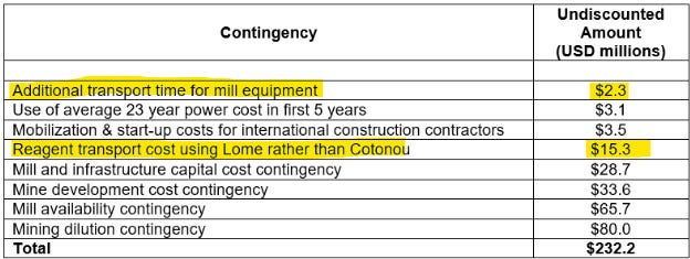 The most recent feasibility study includes significant contingencies for increased transport time and alternate logistics to account for the Benin border remaining closed.