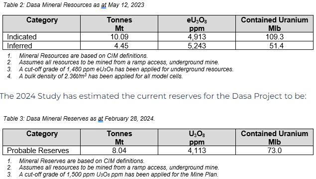 Global Atomic is poised to enhance the Dasa Project's value through strategic infill drilling targeting the 51.4 million pounds of high-grade Inferred Resources. This initiative, set to commence in Q3 2024 from both underground and surface positions, aims to elevate mineable grades post-2038 and extend the mine's operational life beyond 2048. Additionally, exploration drilling will seek to expand the deposit further, leveraging its open at depth and on-strike potential.
