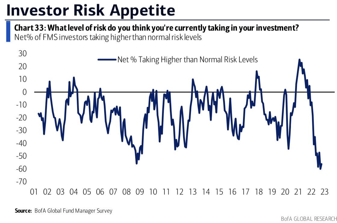 While it’s still early, this change in tone regarding rate hikes could prove to be a significant shift for the markets. If the Fed is starting to wake up and pay attention to the fragility of the global financial system, then perhaps some of the more draconian scenarios for asset prices aren’t that likely anymore. This means a lot of hedges might need to be unwound. It could also mean that fund managers sitting in cash feel comfortable taking risk again. The BAML fund manager survey shows risk appetite is currently at the lowest levels since the 2008 GFC.
