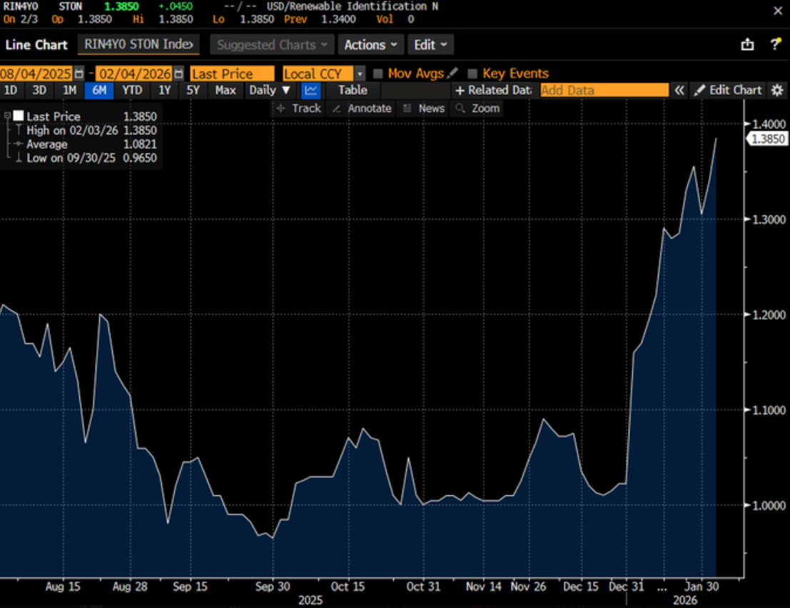 CLMT (see last notes here and here) has been a strong performer this year with the stock up roughly 28% YTD. As I had mentioned in the last update, the market has been ignoring the potential recovery in the bio fuels markets, and the earnings potential for Montana Renewables (MRL). With D4 RIN prices surging to ~$1.4 in anticipation of tighter balances, CLMT stock is getting some tailwinds.